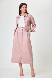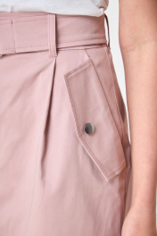 Джинсовая трапеция юбка из хлопка с защипами и декоративными клапанами Anelli 1050 розовый