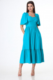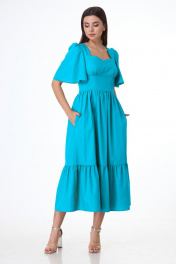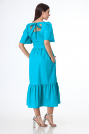 Голубое миди платье из хлопка с рукавами из сборки и бантом Anelli 1058 голубой