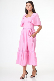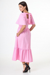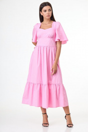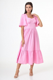 Платье миди из хлопка с лифом на резинке и бантом Anelli 1058 розовый