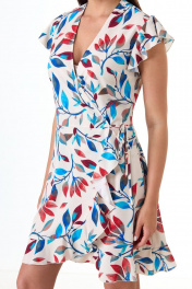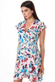 Платье из легкой принтованной ткани для жаркого лета. Первое платье с запахом сконструировала Эльза Скиапарелли в 30-х годах прошлого столетия, но популярным его сделала Диана Фон Фюрстенберг в 70-х годах. Платье стало трендом всех сезонов! Его крой актуален для любых типов фигуры. Полуприлегающий силуэт с функциональной застежкой на запах и завязывающимся деталями по линии талии. Рукава-воланы короткие. Вырез горловины V-образный. Низ платья слегка расширен и дополнен воланом. Идеальное решение для летнего дня! Замеры для каждого размера: ОГ- обхват груди; ОТ-обхват талии; ОБ-обхват бедер; ДИ-длина изделия; ДР-длина рукава. Рост фотомодели – 171 см. Размер 42. ОГ-93; ОТ-75; ОБ-99; ДР- 9 ;ДИ-81. Размер 44. ОГ-97; ОТ-79; ОБ-103; ДР- 9 ;ДИ-81. Размер 46. ОГ-101; ОТ-83; ОБ-107; ДР-9 ;ДИ-81. Размер 48. ОГ-105; ОТ-87; ОБ-111; ДР-9 ;ДИ-81.