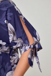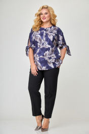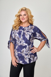 Блуза из легкой принтованной ткани. Прямой силуэт со цельно кроенным рукавом. Элегантный вырез горловины «лодочкой»,застёжка на пуговицы по планке переда.Низ рукавов на завязывающихся манжетах. Блуза дополнит образ с брюками, жакетом и юбкой. Замеры: Рост фотомодели – 171 см, размер фотомодели – 54. ОГ- обхват груди; ОТ-обхват талии; ОБ-обхват бедер; ДИ-длина изделия; ДР-длина рукава (замер от горловины). Размер 52. ОГ-124; ОТ-118; ОБ-92; ДИ-68; ДР-46. Размер 54. ОГ-128; ОТ-122; ОБ-96; ДИ-68; ДР-46. Размер 56. ОГ-132; ОТ-126; ОБ-100; ДИ-68; ДР-46. Размер 58. ОГ-136; ОТ-130; ОБ-104; ДИ-68; ДР-46.