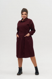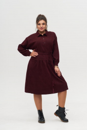 Платье вельветовое из хлопка, длина ниже колена с воланом Anelli 1169 вишня
