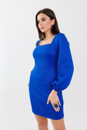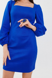 Платье нарядное с бархатистым трикотажем и вырезом изящного декольте Anelli 1179 василёк