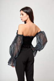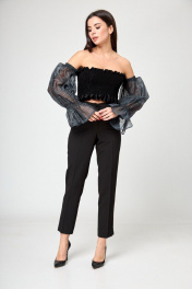 Черный топ с воздушными рукавами из органзы для вечеринок Anelli 1207 черный