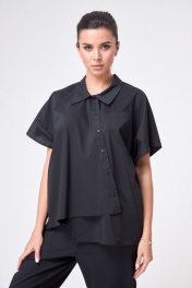 Рубашка ассиметричная до бедра с коротким рукавом Anelli 1227 черный