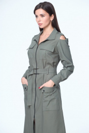 Платье со стойкой. Платье длинное, расклешенное к низу, по переду на застежке молнии. Рукав длинный, рубашечный, с открытым плечом. Притачной пояс по спинке на резинке, что подчеркнёт женственный силуэт фигуры. Горловина обработана стойкой. Платье в стиле милитари, для прогулок, путешествий или повседневной носки подойдёт идеально. Образ невероятно привлекательного солдата, который несёт миру свой уникальный стиль. Наличие карманов делает платье функциональнее, а съёмный пояс поможет вам достичь нужной степени прилегания при необходимости. Цвет на фото может отличатся от цвета изделия в живую, из-за разницы освещения и цветопередачи экранов на которых просматривается изображение. Оставляя Ваш честный отзыв будем благодарны за отзыв с фото. Вся необходимая информация о производителе указана на этикетке. Замеры: ОГ- объем груди; ОТ-объем талии; Об-объем бедер; ДИ-длина изделия; ДР-длина рукава. Размер 50 ОГ- 100;ОТ-92;ОБ-120 ; ДИ-132; ДР-56 . Размер 52 ОГ- 104;ОТ-96;ОБ- 124; ДИ-132; ДР-56 . Размер 54 ОГ-108 ;ОТ-100;ОБ-128 ; ДИ-132; ДР-56 . Размер 56 ОГ- 112;ОТ-104;ОБ- 132; ДИ-132; ДР-56 .