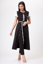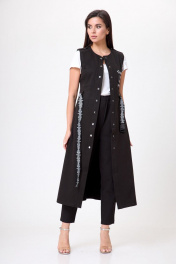Жилет длинный, с разрезами по боковым швам, застежка по переду на кнопках. Округлая горловина. По спинке кокетка. По переду нагрудные карманы и карманы в боковых швах. Жилет декорирован тесьмой и принтом. Жилет подойдёт, как для романтического, так и для более дерзкого образа, в зависимости от вашего настроения. Платье 1237 Anelli Laurel белый сняты с брюками из эко-кожи черными 1223 Anelli Laurel. А так же с топом 767 Anelli Laurel. Цвет на фото может отличатся от цвета изделия в живую, из-за разницы освещения и цветопередачи экранов на которых просматривается изображение. Оставляя Ваш честный отзыв Будем благодарны за отзыв с фото. Вся необходимая информация о производителе указана на этикетке. Замеры: ОГ- объем груди; ОТ-объем талии; Об-объем бедер; ДИ-длина изделия; ДР-длина рукава. Размер 44 ОГ- 88;ОТ-82; ДИ-118. Размер 46 ОГ-92 ;ОТ-86; ДИ-118. Размер 48 ОГ- 96;ОТ-90; ДИ-118. Размер 50 ОГ-100;ОТ-94; ДИ-118. Размер 52 ОГ-104;ОТ-98; ДИ-118. Размер 54 ОГ-108;ОТ-102; ДИ-118. Размер 56 ОГ-112;ОТ-106; ДИ-118. Размер 58 ОГ-116;ОТ-110; ДИ-118. Размер 60 ОГ-120;ОТ-114; ДИ-118. Размер 62 ОГ-124;ОТ-118; ДИ-118.