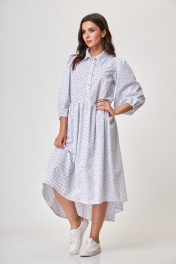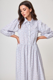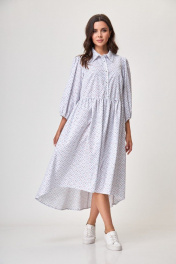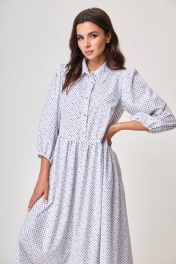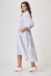 Платье белое свободного силуэта с карманами и рубашечным воротником Anelli 1260 белый+принт_карты