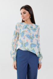 Блуза свободного кроя с рюшей и отложным воротником Anelli 1268 мозаика