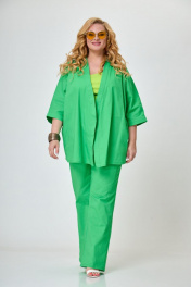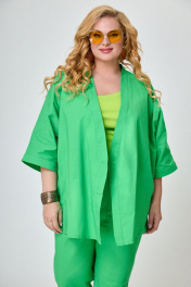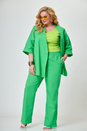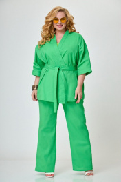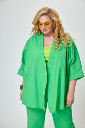 Льняной костюм с кимоно и брюками, зеленый, летний Anelli 1270 зеленый_яркий
