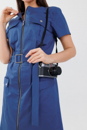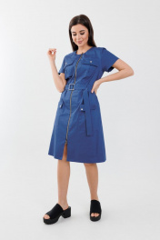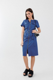 Платье струяное до колена из хлопка с молнией Anelli 1272 синий