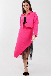 Юбка трапеция миди с прорезью и карманами в классическом стиле Anelli 1279 фуксия