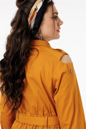 Платье со стойкой – это стильный и универсальный элемент гардероба, который сочетает в себе элегантность и комфорт. Расклешенное к низу платье привлекает внимание еще и благодаря открытым плечам, которые придают образу игривость и свежесть. Притачной пояс по спинке на резинке подчеркивает женственный силуэт, создавая гармоничный образ. Выполненное в стиле милитари, это платье от Анелли идеально подходит для прогулок, путешествий или повседневной носки. Наличие функциональных карманов добавляет практичности, а съемный пояс позволяет регулировать степень прилегания по вашему желанию. Для самых модных: это платье можно смело носить на брюки, создавая оригинальные и стильные образы для любого случая! Замеры: Размер 46: ОГ-102; ОТ-102; ОБ-114; ОП-36; ДИ-124; ДР-63; Размер 48: ОГ-106; ОТ-106; ОБ-118; ОП-37; ДИ-124; ДР-63; Размер 50: ОГ-110; ОТ-110; ОБ-122; ОП-38; ДИ-124; ДР-63; Размер 52: ОГ-114; ОТ-114; ОБ-126; ОП-39; ДИ-124; ДР-63; Размер 54: ОГ-118; ОТ-118; ОБ-130; ОП-40; ДИ-124; ДР-63; Размер 56: ОГ-122; ОТ-122; ОБ-134; ОП-41; ДИ-124; ДР-63; Размер 58: ОГ-126; ОТ-126; ОБ-138; ОП-42; ДИ-124; ДР-63.