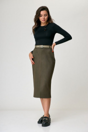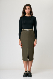 Миди-юбка из текстиля с разрезом и потайной молнией Anelli 1308 хаки