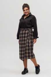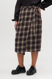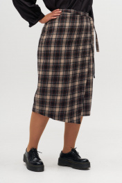 Юбка на запах с асимметричным кроем и поясом Anelli 1310 беж_клетка