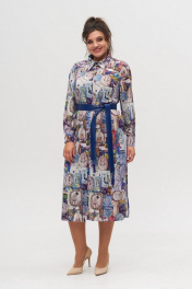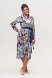 Платье-рубашка женское полуприлегающего силуэта, длинное. Рукав втачной, длинный, низ на манжете. По переду планка на петли пуговицы на всю длину платья. В боковых швах разрезы и карманы на уровне бедер. Горловина обработана воротником со стойкой. Дополнительно подчеркнуть талию можно при помощи съемного пояса. Данное изделия может быть, как отдельным платьем, так и быть частью вашего образа в качестве рубашки. Замеры: Размер 48: ОГ 98, ОТ 90, ОБ 103, ДИ 122, ДР 59 Размер 50: ОГ 103, ОТ 94, ОБ 110, ДИ 122.5, ДР 59 Размер 52: ОГ 106, ОТ 100, ОБ 114, ДИ 123, ДР 59 Размер 54: ОГ 111, ОТ 106, ОБ 117, ДИ 123.5, ДР 59 Размер 56: ОГ 115, ОТ 112, ОБ 121, ДИ 124, ДР 59 Размер 58: ОГ 119, ОТ 118, ОБ, 128, ДИ 124.5, ДР 59