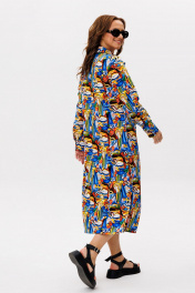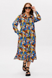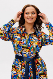 Платье-рубашка полуприлегающего силуэта воплощает гармонию элегантности и непринуждённого стиля. Длинный крой придаёт образу утончённость, а втачные рукава с манжетами добавляют чёткость линий. По переду проходит классическая планка с пуговицами на всю длину, позволяющая легко регулировать степень открытости платья. Функциональность и удобство подчёркивают боковые разрезы и аккуратные карманы на уровне бёдер, сохраняя при этом лаконичность силуэта. Горловина оформлена воротником со стойкой, который придаёт образу лёгкую строгость. Особый шарм платью придаёт съёмный пояс с кисточками, подчёркивающий талию и добавляющий нотку игривости. А принт «Пикассо» оживляет образ, наполняя его художественной теплотой и романтикой. Этот наряд от Анелли — настоящая находка в гардеробе. Его можно носить как самостоятельное платье, сочетая с лёгкими сандалиями или туфельками, или использовать в качестве удлинённой рубашки, накинув поверх джинсов или под укороченный кардиган. Идеально для прогулок, свиданий и встреч с друзьями — везде, где хочется чувствовать себя женственной и свободной. Замеры: Размер 46: ОГ-100; ОТ-92; ОБ-104; ОП-37; ДИ-118; ДР-60; Размер 48: ОГ-104; ОТ-96; ОБ-108; ОП-38; ДИ-118; ДР-60; Размер 50: ОГ-108; ОТ-100; ОБ-112; ОП-40; ДИ-118; ДР-60; Размер 52: ОГ-112; ОТ-106; ОБ-120; ОП-40; ДИ-118; ДР-60; Размер 54: ОГ-116; ОТ-112; ОБ-124; ОП-42; ДИ-119; ДР-60; Размер 56: ОГ-120; ОТ-118; ОБ-128; ОП-42; ДИ-120; ДР-60;