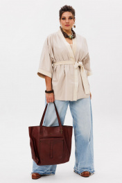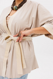 Жакет кимоно - это баланс выразительного стиля и продуманного комфорта, который ощущается с первого прикосновения. Снаружи гладкая эко-кожа придаёт образу уверенность и современное звучание, а внутри мягкая замшевая подкладка окутывает теплом и нежностью, делая его идеальным для повседневного использования. Оно легко вписывается в гардероб, гармонично сочетаясь как с юбками, так и с брюками, создавая расслабленные, но при этом элегантные образы. Это кимоно в цвете «сливочный нюд» выбирают те, кто ценит эстетику, удобство и осознанный подход к моде, ведь каждая деталь в нём - про стиль с душой и любовью от Анелли. Размер 50-52: ОГ-136; ОБ-130; ДИ-72; ДР от горловины - 53; Размер 54-56: ОГ-144; ОБ-138; ДИ-73; ДР от горловины - 53; Размер 58-60: ОГ-158; ОБ-152; ДИ-74; ДР от горловины - 54.