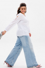 Эта блуза от Анелли - настоящая ода романтизму. С первого взгляда она выглядит романтичной, а при ближайшем рассмотрении приобретает чувственную изысканность. Изготовленная из мягкой на ощупь ткани, она обладает полуприлегающим силуэтом, который выгодно подчеркивает фигуру. Особенно привлекательны втачные рукава с разрезами по всей длине и навесными петельками, украшенными пуговицами на притачной манжете. Эти детали добавляют блузе изысканности и шарма. V-образный вырез горловины с функциональной застежкой дополняет образ и придает блузе некую загадочность. Она идеально сочетает в себе романтический стиль с чувственными деталями, делая ее отличным выбором для особых моментов и повседневной жизни. Замеры: Размер 50: ОГ-107; ОТ-109; ОБ-114; ДИ-72; ДР-59.5; Размер 52: ОГ-111; ОТ-113; ОБ-118; ДИ-73; ДР-59.5; Размер 54: ОГ-117; ОТ-118; ОБ-124; ДИ-74; ДР-59.5; Размер 56: ОГ-121; ОТ-123; ОБ-130; ДИ-75; ДР-59.5; Размер 58: ОГ-124; ОТ-130; ОБ-134; ДИ-76; ДР-59.5; Размер 60: ОГ-128; ОТ-136; ОБ-140; ДИ-76.5; ДР-59.5.
