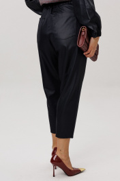 Брюки из эко кожи от Анелли — это трендовое изделие. Глубокий цвет в сочетании с легким блеском делает их настоящей жемчужиной вашего гардероба. Средняя посадка брюк с двумя отрезными и двумя накладными карманами обеспечивает комфорт и удобство в течение дня. Притачной пояс с резинкой по спинке и двумя шлевками для ремня делает их универсальными для любого типа фигуры. Эти брюки заужены к низу, что позволяет носить их с любым видом обуви. Также, вы можете составить образы с топом 767 и бомбером 1378 как на модели. Размер 52: ОТ-90, ОБ-112, ДИ-89, ШИ по низу - 34; Размер 54: ОТ-94, ОБ-116, ДИ-90, ШИ по низу - 35.