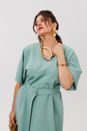 Это платье в цвете «океанская волна» — образец сдержанной элегантности и безупречного вкуса. Его прямой силуэт мягко следует линиям фигуры, создавая лаконичный и при этом выразительный силуэт. Рукав в стиле кимоно добавляет образу легкость и динамику, делая каждое движение плавным и изящным. V-образный вырез горловины придает платью ноту утонченности, подчеркивая женственность без излишней откровенности. Дополненное поясом, оно приобретает более структурированный вид, позволяя подчеркнуть талию и создать идеальные пропорции. Аккуратный разрез спереди вносит в образ современное звучание, добавляя ему легкости и свободы. Это платье от Анелли — идеальный выбор для тех, кто ценит гармонию простоты и изысканности. Оно одинаково уместно и на светском мероприятии, и в повседневной обстановке, где важны стиль и комфорт. Замеры: Размер 54: ОГ-116; ОТ-116; ОБ-126; ОП ширина внизу рукава - 54; ДИ-121; ДР от горловины - 41; Размер 56: ОГ-120; ОТ-120; ОБ-130; ОП ширина внизу рукава - 58; ДИ-122; ДР от горловины - 42; Размер 58: ОГ-124; ОТ-124; ОБ-134; ОП ширина внизу рукава - 59; ДИ-122; ДР от горловины - 42; Размер 60: ОГ-128; ОТ-128; ОБ-138; ОП ширина внизу рукава - 60; ДИ-124; ДР от горловины - 44; Размер 62: ОГ-132; ОТ-132; ОБ-142; ОП ширина внизу рукава - 63; ДИ-126; ДР от горловины - 44;