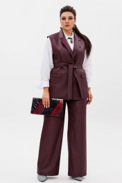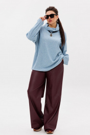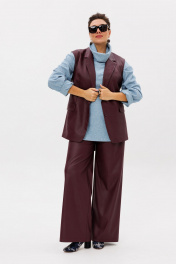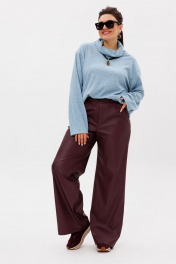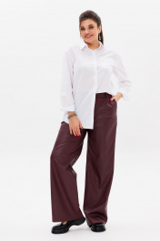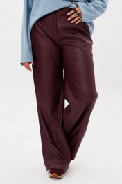 Брюки палаццо из эко-кожи с резинкой и карманами Anelli 1400.2 порто_руби