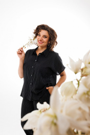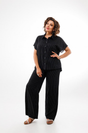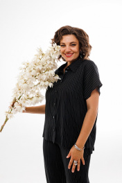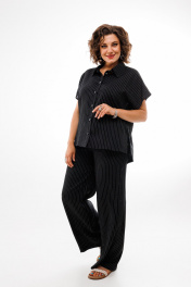 Льняной костюм брюки и рубашка с коротким рукавом — черный Anelli 1405 черный