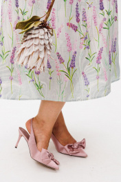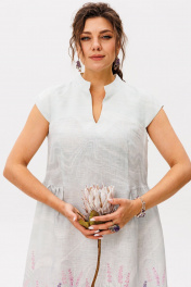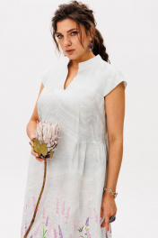 Это платье из благородного беларусского льна в цвете "лавандовый аромат" - истинная поэзия женственности, воплощенная в ткани. Его лаконичный силуэт обретает нежную воздушность благодаря рукавам-крылышкам, которые мягко обрамляют линию плеч, придавая образу трогательную хрупкость. Стройная стойка горловины подчеркивает изящную линию шеи, а архитектура нагрудных вытачек создает безупречную посадку, словно скульптор, ваяющий совершенные формы. От талии лёгкими волнами расходится пышная юбка, собранная в мелкую, живую сборку, которая дарит свободу движения и делает каждый шаг исполненным грации. В этом наряде от Анелли есть особая магия - в нём одинаково органично встретиться с друзьями за завтраком в городском кафе и закружиться в вихре торжества, чувствуя себя не просто нарядно, а по-королевски роскошно в своей естественной, утонченной красоте.
