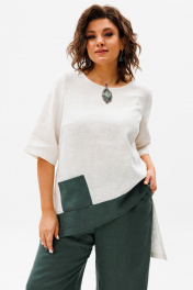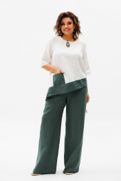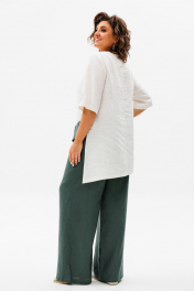 Летний костюм из льна блуза и брюки на резинке Anelli 1459 олива