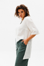Костюм от Анелли из высококачественного, беларуского льна. Ассиметричная блуза с карманом и брюки на резинке с карманами составляют идеальный ансамбль на лето. Костюм в котором можно отправится и на работу, и на деловую встречу и на свидание с прогулкой по вечернему городу. Не упустите возможность выглядеть стильно, комфортно и привлекательно. Замеры: Размер 50: Блуза: ОГ-110; ОБ-120; ОП-38; ДИ-84; ДР-35; Брюки: ОТ-80; ОБ-114; ДИ-110; ширина по низу - 66; Размер 52: Блуза: ОГ-116; ОБ-126; ОП-40; ДИ-84; ДР-36; Брюки: ОТ-84; ОБ-118; ДИ-111; ширина по низу - 68; Размер 54: Блуза: ОГ-122; ОБ-132; ОП-40; ДИ-84; ДР-36; Брюки: ОТ-88; ОБ-122; ДИ-111; ширина по низу - 68; Размер 56: Блуза: ОГ-126; ОБ-138; ОП-42; ДИ-85; ДР-36; Брюки: ОТ-92; ОБ-126; ДИ-111; ширина по низу - 70; Размер 58: Блуза: ОГ-130; ОБ-142; ОП-44; ДИ-85; ДР-36; Брюки: ОТ-96; ОБ-130; ДИ-111; ширина по низу - 70; Размер 60: Блуза: ОГ-136; ОБ-146; ОП-45; ДИ-85; ДР-37; Брюки: ОТ-100; ОБ-134; ДИ-111; ширина по низу - 70