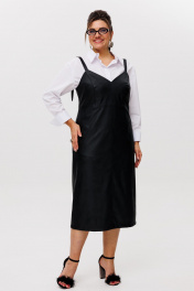 Сарафан из эко-кожи с заниженной линией талии и карманами Anelli 1497 готика