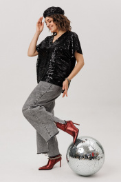 Погрузитесь в мир блеска и стиля с великолепным блузоном из пайеток от Анелли! Прямой силуэт и v-образный вырез подчеркивают элегантность, а спущенные плечи придают образу легкость и непринужденность. Ассиметричный низ добавляет оригинальности, а подкладка обеспечивает комфорт и нежность изнутри. Этот уникальный элемент гардероба освежит любой образ, добавляя нотку роскоши и элегантности. Идеален для вечеринок, коктейльных мероприятий или романтических встреч - он станет вашим верным спутником в мире моды. Благодаря своему универсальному дизайну, он легко комбинируется с джинсами, юбками или брюками, создавая бесконечные стильные образы. Блузон из пайеток «бурлеск» не только привлекает взгляды, но и дарит уверенность в себе. Не стесняйтесь сиять в любых обстоятельствах! Размер 48: ОГ-116; ОБ-114; ДИ от плеча до спинки - 68; ДИ от полочки до плеча - 65; ШП-32; Размер 50: ОГ-120; ОБ-118; ДИ от плеча до спинки - 69; ДИ от полочки до плеча - 65; ШП-32; Размер 52: ОГ-124; ОБ-122; ДИ от плеча до спинки - 69; ДИ от полочки до плеча - 66; ШП-33; Размер 54: ОГ-128; ОБ-126; ДИ от плеча до спинки - 71; ДИ от полочки до плеча - 65; ШП-36.