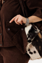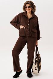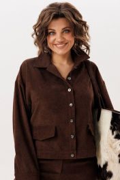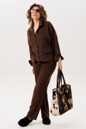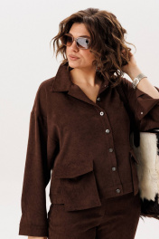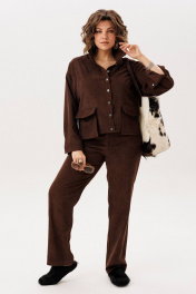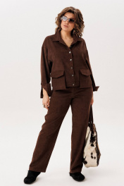 Джут цвета «кедрового ореха» из мягкого штрукса создан для повседневного комфорта и стильной многослойности. Свободный крой со спущенной линией плеча придаёт образу расслабленность и лёгкость, а длинный рукав с манжетой на петлю и пуговицу аккуратно завершает силуэт. Застёжка на петли и пуговицы делает модель практичной и универсальной, а два съёмных кармана на кнопках добавляют функциональности и позволяют менять настроение изделия. Этот джут невероятно удобный и приятный в носке: его можно сочетать с брюками 1815 из той же ткани для цельного образа или накидывать поверх платья, создавая уютный и современный повседневный стиль. На модели брюки 1815. Замеры: Размер 48: ОГ-116; ОБ-112; ОП-50; ДИ-55; ДР-50; ШП-21.5; Размер 50: ОГ-120; ОБ-116; ОП-52; ДИ-57; ДР-50; ШП-22; Размер 52: ОГ-124; ОБ-120; ОП-52; ДИ-57; ДР-49; ШП-22; Размер 54: ОГ-128; ОБ-124; ОП-54; ДИ-57; ДР-49; ШП-22,5; Размер 56: ОГ-132; ОБ-128; ОП-56; ДИ-58; ДР-49; ШП-23; Размер 58: ОГ-136; ОБ-132; ОП-56; ДИ-58; ДР-48; ШП-23,5; Размер 60: ОГ-140; ОБ-136; ОП-58; ДИ-59; ДР-48; ШП-24; Размер 62: ОГ-144; ОБ-140; ОП-60; ДИ-60; ДР-48; ШП-24,5;