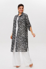 Шазюбль – изысканная длинное платье-рубашка из воздушного шифона, созданная для тех, кто ценит элегантность и комфорт в каждой детали. Свободный крой мягко обволакивает силуэт, даря ощущение лёгкости и непринуждённости. Отложной воротник на стойке добавляет нотку строгости, сохраняя при этом утончённый шарм. Застёжка на петли и пуговицы позволяет регулировать степень открытости, создавая разные образы – от сдержанного до романтичного. Рукав три четверти с регулируемым хлястиком подчёркивает женственность линий, а боковые разрезы придают динамику и лёгкость движению. Шазюбль от Анелли – это не просто рубашка, а многофункциональная вещь, которая легко сочетается с брюками, шортами или платьем, добавляя образу слоистость и глубину. Лёгкий шифон защитит от летнего ветерка, не утяжеляя силуэт, а стильный принт «теневой зверь» сделает вас заметной в любой ситуации. Это та самая вещь, в которой удобно, красиво и невероятно стильно. Шазюбль – для тех, кто любит моду без границ. Рост модели 173 см, размер 52. Для того чтобы подобрать для себя идеальный размер, обязательно сверяйтесь с замерами в описании, мы их делаем индивидуально к каждому изделию. А если будут вопросы задавайте их менеджерам или пишите в отдел заботы. На модели топ 1576, молочные брюки 1416.1 и черные брюки 1540. Замеры: Размер 54: ОГ-124; ОБ-130; ОП-42; ДИ-107; ДР-44; Размер 56: ОГ-128; ОБ-134; ОП-42; ДИ-107; ДР-44; Размер 58: ОГ-134; ОБ-140; ОП-44; ДИ-107; ДР-44; Размер 60: ОГ-138; ОБ-142; ОП-46; ДИ-107; ДР-44; Размер 62: ОГ-142; ОБ-146; ОП-48; ДИ-108; ДР-44; Размер 64: ОГ-146; ОБ-150; ОП-50; ДИ-108; ДР-44;