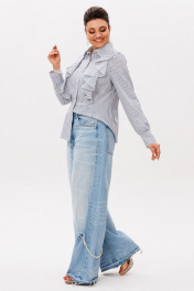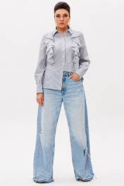 Строгие линии классической полоски встречаются с женственной игривостью в этой необычной рубашке. Вертикальный рисунок визуально вытягивает силуэт, делая его более стройным и изящным, а струящиеся волны воланов по переду придают образу лёгкую динамику и особый шарм. Модель сочетает в себе деловую элегантность и романтичное настроение. Традиционный крой рубашки неожиданно оживляется оригинальной деталью - мягкими волнообразными воланами, которые создают эффект движения даже при лёгком дуновении ветерка. Рубашка сшита из лёгкой струящейся ткани, которая мягко облегает фигуру, не сковывая движений. Удобный крой и качественные материалы обеспечивают комфорт в течение всего дня, а необычный дизайн гарантирует комплименты и восхищённые взгляды. Идеальный баланс между классикой и современностью делает эту модель универсальной. Она одинаково органично смотрится с деловыми брюками, юбками-карандаш, джинсами или шортами. Эта рубашка от Анелли - для тех, кто ценит нестандартные решения в классическом гардеробе. В ней вы всегда будете выглядеть стильно, свежо и неординарно. И помните: воланы — это не просто деталь, а готовый повод для комплиментов! Замеры: Размер 42: ОГ-94; ОТ-86; ОБ-96; ОП-30; ДИ-63; ДР-62; Размер 44: ОГ-98; ОТ-90; ОБ-100; ОП-32; ДИ-63; ДР-62; Размер 46: ОГ-102; ОТ-94; ОБ-104; ОП-34; ДИ-63; ДР-63; Размер 48: ОГ-106; ОТ-98; ОБ-108; ОП-34; ДИ-63; ДР-63; Размер 50: ОГ-110; ОТ-102; ОБ-112; ОП-36; ДИ-64; ДР-63.