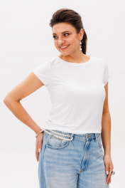 Белый вискозный топ от Анелли — идеальная база для любого образа. Мягкий и приятный на ощупь вискозный трикотаж делает этот топ невероятно комфортным для ежедневной носки. Материал хорошо тянется, сохраняет форму и не стесняет движений, обеспечивая идеальную посадку по фигуре. Прямой силуэт умеренного объема подойдет большинству типов фигур. Укороченный втачной рукав и аккуратная обработка бейкой по горловине и низу добавляют лаконичную аккуратность. Эффект "открытого среза" на горловине придает модели современное звучание. Белый цвет делает этот топ универсальным: он одинаково хорошо сочетается и с джинсами, и с юбками, и с любыми жакетами. Это та базовая вещь, которую можно надеть куда угодно — в офис, на прогулку или на встречу с друзьями. Простой, но продуманный крой, качественный материал и цвет «подснежник» превращают этот топ в must-have, который действительно нужен в гардеробе каждой девушки. Замеры: Размер 42: ОГ-82; ОБ-88; ОП-30; ДИ-51; ДР-12; Размер 44: ОГ-86; ОБ-92; ОП-30; ДИ-52; ДР-12; Размер 46: ОГ-90; ОБ-96; ОП-32; ДИ-52; ДР-12; Размер 48: ОГ-94; ОБ-100; ОП-32; ДИ-54; ДР-13; Размер 50: ОГ-98; ОБ-104; ОП-34; ДИ-54; ДР-13; Размер 52: ОГ-102; ОБ-108; ОП-34; ДИ-54; ДР-14.