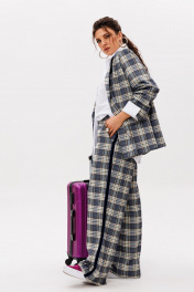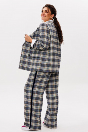 Костюм, сочетающий в себе свободу современного кроя и безупречную элегантность. Жакет удлиненного силуэта, мягко ниспадающий до середины бедра, создает выразительный силуэт, подчеркнутый классическим воротником с отложными лацканами. Длинные рукава и прорезные карманы с клапанами добавляют образу строгости и завершенности. Брюки с высокой посадкой и прямым кроем обеспечивают идеальную линию от талии до щиколотки. Эффектные детали — контрастные лампасы и продуманная конструкция спинки с вытачками — создают безупречную посадку по фигуре. Удобная застежка и эластичная вставка в области пояса гарантируют комфорт в течение всего дня. Несмотря на объемный крой, костюм от Анелли сохраняет женственные пропорции и легкость. Его можно компоновать как в ансамбле, так и раздельно, создавая многогранные стильные образы для работы или особых моментов. Это инвестиция в уверенность, безупречный вкус и чувство комфорта, которое не покидает вас с самого утра до позднего вечера. На модели в костюме цвета «омутовая синева» рубашка 1203.1. Рост модели 173 см, размер 52. Для того чтобы подобрать для себя идеальный размер, обязательно сверяйтесь с замерами в описании, мы их делаем индивидуально к каждому изделию. А если будут вопросы задавайте их менеджерам или пишите в отдел заботы. Замеры: Размер 44: Жакет: ОГ-100; ОБ-102; ОП-36; ДИ-70; ДР-59; Брюки: ОТ-82; ОБ-102; ДИ-107; ширина по низу - 57; Размер 46: Жакет: ОГ-106; ОБ-108; ОП-38; ДИ-70; ДР-60; Брюки: ОТ-86; ОБ-106; ДИ-108; ширина по низу - 59; Размер 48: Жакет: ОГ-110; ОБ-112; ОП-38; ДИ-71; ДР-60; Брюки: ОТ-90; ОБ-110; ДИ-108; ширина по низу - 62; Размер 50: Жакет: ОГ-114; ОБ-116; ОП-40; ДИ-70; ДР-60; Брюки: ОТ-94; ОБ-114; ДИ-107; ширина по низу - 62; Размер 52: Жакет: ОГ-118; ОБ-120; ОП-42; ДИ-71; ДР-60; Брюки: ОТ-98; ОБ-118; ДИ-107; ширина по низу - 62; Размер 54: Жакет: ОГ-122; ОБ-124; ОП-42; ДИ-70; ДР-60; Брюки: ОТ-104; ОБ-124; ДИ-107; ширина по низу - 62; Размер 56: Жакет: ОГ-126; ОБ-128; ОП-44; ДИ-70; ДР-60; Брюки: ОТ-110; ОБ-130; ДИ-108; ширина по низу - 62;