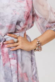 Воздушное и невесомое, словно летнее утро, это платье от Анелли очаровывает своей мягкой женственностью. Свободный силуэт-трапеция струится вдоль фигуры, даря комфорт и легкость каждому движению. V-образный вырез горловины подчеркивает изящество линий, а втачные рукава три четверти с нежной резинкой по низу добавляют образу утонченную аккуратность. Пояс из той же струящейся вискозы мягко подчеркивает талию, сохраняя плавность силуэта. Длина миди делает платье идеальным для теплых дней — оно прекрасно подойдет для прогулок по цветущим паркам, романтического свидания или свадебного торжества в стиле нежной элегантности. Это платье в цвете «розовый сапфир» — воплощение легкости и очарования, созданное для тех, кто ценит гармонию простоты и природной красоты. Рост модели 173 см, размер 52. Для того чтобы подобрать для себя идеальный размер, обязательно сверяйтесь с замерами в описании, мы их делаем индивидуально к каждому изделию. А если будут вопросы задавайте их менеджерам или пишите в отдел заботы. Замеры: Размер 54: ОГ-130; ОБ-146; ОП-46; ДИ-131; ДР-40; Размер 56: ОГ-136; ОБ-152; ОП-48; ДИ-131; ДР-41; Размер 58: ОГ-142; ОБ-158; ОП-48; ДИ-131; ДР-41; Размер 60: ОГ-146; ОБ-162; ОП-50; ДИ-131; ДР-41; Размер 62: ОГ-152; ОБ-168; ОП-52; ДИ-133; ДР-41;
