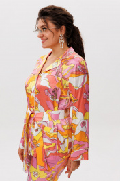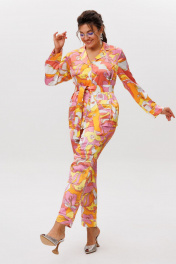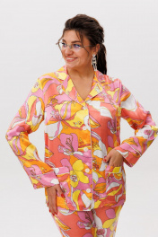 Этот костюм «тропикана» — идеальный баланс между уютом и элегантностью. Созданный в гармоничном сочетании оттенков, он дарит ощущение мягкого шика, не уступая в изысканности. Блуза прямого кроя с втачными рукавами и свободные брюки на резинке обеспечивают лёгкость движений, сохраняя безупречный силуэт. Детали, вдохновлённые пиджачным стилем — элегантный отложной воротник, притачные манжеты и кантовая отделка — придают образу утончённость. Функциональность сочетается с изяществом: блуза дополнена накладными карманами с фигурной обработкой кантом, а брюки — удобными врезными карманами. Съёмный пояс, завязывающийся на талии, позволяет подчеркнуть линию силуэта, добавляя ноту женственности. Плотная, но дышащая ткань делает этот костюм универсальным — он одинаково прекрасен для домашнего отдыха и выходов в свет. Дополненный каблуками, он превращается в стильный городской образ, где каждая деталь говорит о безупречном вкусе. Это не просто одежда — это воплощение гармонии комфорта и роскоши. Рост модели 173 см, размер 52. Для того чтобы подобрать для себя идеальный размер, обязательно сверяйтесь с замерами в описании, мы их делаем индивидуально к каждому изделию. А если будут вопросы задавайте их менеджерам или пишите в отдел заботы. Замеры: Размер 44: Блуза: ОГ-98; ОБ-100; ОП-35; ДИ-64; ДР-57; Брюки: ОТ-92; ОБ-102; ДИ-96; ширина по низу - 37; Размер 46: Блуза: ОГ-102; ОБ-104; ОП-36; ДИ-65; ДР-58; Брюки: ОТ-96; ОБ-104; ДИ-96; ширина по низу - 37; Размер 48: Блуза: ОГ-106; ОБ-108; ОП-37; ДИ-65; ДР-59; Брюки: ОТ-100; ОБ-108; ДИ-96; ширина по низу - 38; Размер 50: Блуза: ОГ-110; ОБ-112; ОП-37; ДИ-65; ДР-60; Брюки: ОТ-104; ОБ-112; ДИ-97; ширина по низу - 40; Размер 52: Блуза: ОГ-114; ОБ-116; ОП-40; ДИ-66; ДР-61; Брюки: ОТ-108; ОБ-116; ДИ-98; ширина по низу - 40; Размер 54: Блуза: ОГ-120; ОБ-122; ОП-40; ДИ-65; ДР-61; Брюки: ОТ-112; ОБ-120; ДИ-98; ширина по низу - 40; Размер 56: Блуза: ОГ-124; ОБ-126; ОП-42; ДИ-65; ДР-62; Брюки: ОТ-116; ОБ-124; ДИ-98; ширина по низу - 40;