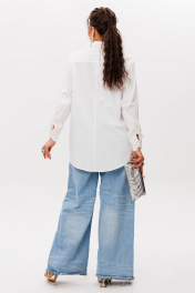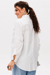 Созданная из мягчайшего хлопка, эта рубашка мягко следует за линиями тела, даря новое ощущение свободы. Её силуэт, плавно расширяющийся книзу, и выразительная асимметрия подола создают современный, скульптурный объем. Дизайн, в котором искусство кроя проявляется в каждой детали: смещенные боковые швы рисуют изящные рельефные линии, мягко направляя ткань и подчеркивая форму. Задняя часть с элегантной отрезной кокеткой и вертикальным швом добавляет не только безупречную посадку, но и архитектурную четкость. Мягкий рубашечный воротник и спущенное плечо создают непринужденную утонченность. Длинный рукав, завершающийся манжетой на пуговице, струится плавной линией, завершая образ целостности и стиля. Замеры: Размер 48: ОГ-110; ОБ-122; ОП-38; ДИ по спинке - 82; ДР-61; ДИ по переду - 64; Размер 50: ОГ-114; ОБ-126; ОП-38; ДИ по спинке - 82; ДР-61; ДИ по переду - 64; Размер 52: ОГ-118; ОБ-130; ОП-40; ДИ по спинке - 82; ДР-61; ДИ по переду - 64; Размер 54: ОГ-122; ОБ-134; ОП-40; ДИ по спинке - 82; ДР-61; ДИ по переду - 64; Размер 56: ОГ-126; ОБ-138; ОП-42; ДИ по спинке - 82; ДР-61; ДИ по переду - 64; Размер 58: ОГ-130; ОБ-142; ОП-44; ДИ по спинке - 82; ДР-61; ДИ по переду - 64;
