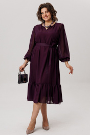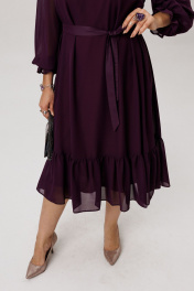 Платье, в котором лёгкость и многослойность создают особое настроение женственности и утончённости. Верхнее платье из невесомого шифона мягко струится при движении, формируя свободный летящий силуэт длины миди. Присобранные рукава с оборками добавляют образу воздушности, а V-образный вырез деликатно подчёркивает линию шеи, сохраняя ощущение лёгкости и романтики. Полупрозрачная фактура создаёт игру слоёв и делает образ глубже и выразительнее. Нижнее платье-комбинация из мягкого трикотажа с полуприлегающим силуэтом обеспечивает комфорт и красиво ложится по фигуре. Съёмный пояс становится деликатным акцентом, позволяя подчеркнуть талию или оставить силуэт свободным и расслабленным. Цвет «чернослива» придаёт модели благородство и элегантность, наполняя образ глубиной и спокойной выразительностью. Лёгкие воздушные материалы делают платье от Анелли универсальным - оно одинаково гармонично впишется в повседневные образы и станет изящным решением для особых моментов, когда хочется выглядеть женственно, легко и с особым настроением. Замеры: Размер 54: Верх: ОГ-116; ОТ-132; ОБ-146; ОП-44; ДИ-114; ДР-61; Чехол: ОГ-108; ОТ-110; ОБ-118; ДИ по низу - 74; Размер 56: Верх: ОГ-120; ОТ-136; ОБ-150; ОП-44; ДИ-116; ДР-62; Чехол: ОГ-112; ОТ-114; ОБ-122; ДИ по низу - 75; Размер 58: Верх: ОГ-124; ОТ-140; ОБ-154; ОП-46; ДИ-115; ДР-62; Чехол: ОГ-116; ОТ-120; ОБ-126; ДИ по низу - 77;