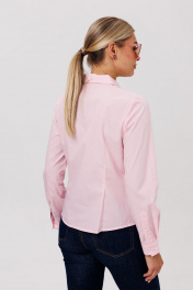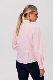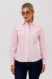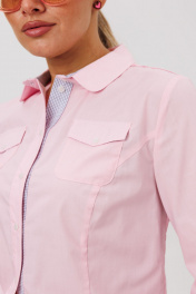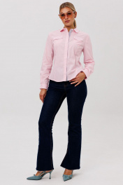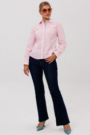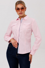 Классическая блуза полуприлегающего силуэта, создающая элегантный и утонченный силуэт. Модель сконструирована с талевыми вытачками по переду и спинке, что обеспечивает идеальную посадку по фигуре. Дополняют образ накладные карманы с аккуратными клапанами. Воротник сорочечного типа и застежка на пуговицы, оформленная притачными планками с декоративной отделкой, подчеркивают классический стиль. Длинные рукава завершаются манжетами, а прорежка на них выделена сложной технологической обработкой с использованием отделочной детали. Эта блуза — универсальный базовый предмет гардероба, который легко комбинируется с деловой и повседневной одеждой. Она составляет гармоничный ансамбль с юбкой, брюками или костюмом, делая образ завершенным и стильным. Замеры: Размер 40: ОГ-88; ОТ-76; ОБ-88; ОП-30; ДИ-57; ДР-61; Размер 42: ОГ-92; ОТ-80; ОБ-92; ОП-30; ДИ-57; ДР-61; Размер 44: ОГ-96; ОТ-84; ОБ-96; ОП-32; ДИ-58; ДР-61; Размер 46: ОГ-100; ОТ-88; ОБ-100; ОП-32; ДИ-59; ДР-62; Размер 48: ОГ-104; ОТ-92; ОБ-104; ОП-33; ДИ-59; ДР-63; Размер 50: ОГ-108; ОТ-96; ОБ-108; ОП-34; ДИ-60; ДР-63; Размер 52: ОГ-112; ОТ-100; ОБ-112; ОП-34; ДИ-60; ДР-63.