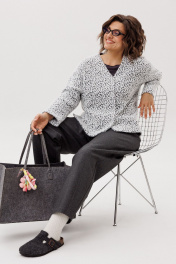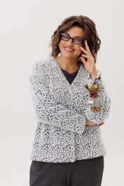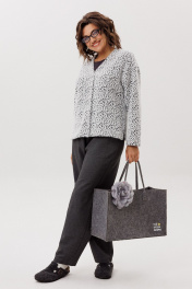 Погрузитесь в атмосферу утонченного комфорта с этим жакетом от Анелли. Он соткан из невероятно мягкого и пушистого трикотажа, который нежно обволакивает фигуру, даря чувство защищенности и расслабленности. Его прямой силуэт со спущенным плечом и изящными разрезами по бокам струится легко и свободно, подчеркивая достоинства, не сковывая движений. Глубокий V-образный вырез горловины добавляет образу женственности и строгой элегантности, а классическая застежка на красивые пуговицы завершает безупречный вид. Этот жакет — идеальный компаньон для вашей динамичной жизни: он поможет создать уверенный образ на важной встрече, станет элегантным решением для дня в офисе и согреет во время вечерней прогулки. Это та самая вещь, в которой вы будете чувствовать себя собранно, роскошно и по-настоящему уютно в любой момент вашего дня. На модели в жакете цвета "пушистый лео" брюки 1660.1. Замеры: Размер 52: ОГ-116, ОБ-116, ОП-46, ДИ-63, ДР-51, ШП-22; Размер 54: ОГ-120, ОБ-120, ОП-46, ДИ-64, ДР-50, ШП-21; Размер 56: ОГ-124, ОБ-124, ОП-48, ДИ-65, ДР-49, ШП-23; Размер 58: ОГ-128, ОБ-128, ОП-48, ДИ-65, ДР-49, ШП-23; Размер 60: ОГ-132, ОБ-132, ОП-50, ДИ-67, ДР-48, ШП-24; Размер 62: ОГ-136, ОБ-136, ОП-50, ДИ-67, ДР-48, ШП-24.
