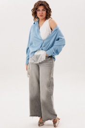 Изящная блуза от Анелли, сотканная из современной роскоши. Её суть - в благородной ткани: струящейся, нежной, с глубоким и сдержанным блеском, которая облегает фигуру мягким, но уверенным потоком. Тон задают безупречные детали: строгий отложной воротник на стойке, чёткая линия застёжки на пуговицах и идеальные втачные рукава, собранные у запястья в изящные манжеты. Их совершенство оттеняет смелая игра кроя - асимметричный низ, и та самая изысканная деталь в виде мягкого узла, которая придаёт силуэту запоминающийся художественный штрих. Эта рубашка создана стать главной героиней вашего гардероба. Она с лёгкостью сочетается с классическими брюками, создавая образ для важных встреч, или с простыми джинсами, мгновенно поднимая их до уровня утончённого стиля. Идеальное комбо с топом с кружевом 1664, этот дуэт открывает пространство для тонких экспериментов. Это выбор для тех, кто ценит безупречный крой, дорогую ткань и силу тихой, но абсолютной уверенности в каждой детали. На модели в блузе цвета «голубая лагуна» кружевной топ 1664 и юбка 1817. Размер 46: ОГ-106; ОБ-112; ОП-38; ДИ спинки - 64; ДР-62; ДИ переда - 60; Размер 48: ОГ-110; ОБ-116; ОП-40; ДИ спинки - 64; ДР-62; ДИ переда - 59; Размер 50: ОГ-114; ОБ-120; ОП-40; ДИ спинки - 64; ДР-62; ДИ переда - 60; Размер 52: ОГ-118; ОБ-124; ОП-42; ДИ спинки - 65; ДР-62; ДИ переда - 62; Размер 54: ОГ-122; ОБ-128; ОП-44; ДИ спинки - 65; ДР-61; ДИ переда - 62; Размер 56: ОГ-126; ОБ-132; ОП-46; ДИ спинки - 66; ДР-62; ДИ переда - 63; Размер 58: ОГ-130; ОБ-138; ОП-46; ДИ спинки - 67; ДР-62; ДИ переда - 64; Размер 60: ОГ-134; ОБ-144; ОП-48; ДИ спинки - 67; ДР-62; ДИ переда - 64; Размер 62: ОГ-138; ОБ-148; ОП-50; ДИ спинки - 68; ДР-62; ДИ переда - 65.