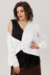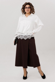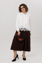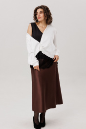 Изящная рубашка от Анелли, сотканная из современной роскоши. Её суть - в благородной ткани: струящейся, нежной, с глубоким и сдержанным блеском, которая облегает фигуру мягким, но уверенным потоком. Тон задают безупречные детали: строгий отложной воротник на стойке, чёткая линия застёжки на пуговицах и идеальные втачные рукава, собранные у запястья в изящные манжеты. Их совершенство оттеняет смелая игра кроя - асимметричный низ, и та самая изысканная деталь в виде мягкого узла, которая придаёт силуэту запоминающийся художественный штрих. Эта рубашка создана стать главной героиней вашего гардероба. Она с лёгкостью сочетается с классическими брюками, создавая образ для важных встреч, или с простыми джинсами, мгновенно поднимая их до уровня утончённого стиля. Идеальное комбо с топом с кружевом 1664, этот дуэт открывает пространство для тонких экспериментов. Это выбор для тех, кто ценит безупречный крой, дорогую ткань и силу тихой, но абсолютной уверенности в каждой детали. На модели в рубашке цвета «перламутровая жемчужина» топ 1664, юбка-брюки 1783 и атласная юбка 1808. Размер 52: ОГ-118; ОБ-124; ОП-42; ДИ спинки - 65; ДР-62; ДИ переда - 62; Размер 54: ОГ-122; ОБ-128; ОП-44; ДИ спинки - 65; ДР-61; ДИ переда - 62; Размер 56: ОГ-126; ОБ-132; ОП-46; ДИ спинки - 66; ДР-62; ДИ переда - 63; Размер 58: ОГ-130; ОБ-138; ОП-46; ДИ спинки - 67; ДР-62; ДИ переда - 64; Размер 60: ОГ-134; ОБ-144; ОП-48; ДИ спинки - 67; ДР-62; ДИ переда - 64; Размер 62: ОГ-138; ОБ-148; ОП-50; ДИ спинки - 68; ДР-62; ДИ переда - 65.