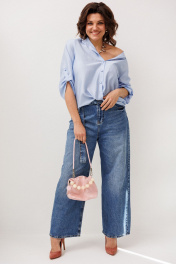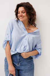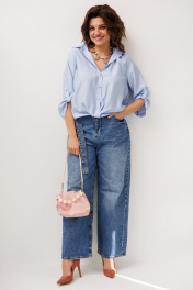 Рубашка свободного прямого силуэта, в которой легко чувствовать себя уверенно и комфортно в течение всего дня. Легкая тонкая ткань в цвете «голубика» мягко движется вместе с вами, создавая расслабленный, но аккуратный силуэт. Отложной воротник на стойке добавляет образу собранности, а застёжка на петли и пуговицы подчеркивает классическое настроение модели. Ассиметричный низ придаёт рубашке современную динамику, а декоративный узел становится деликатным акцентом, который делает образ интересным и живым. Втачной рукав 3/4 с хлястиком добавляет удобства и легкой непринужденности, сохраняя аккуратный вид. Эта рубашка от Анелли легко вписывается в повседневный гардероб - с джинсами она выглядит расслабленно и стильно, с брюками или юбкой и каблуком становится более собранной и женственной. В ней комфортно на работе, на встрече с друзьями или в насыщенном городском ритме, когда хочется выглядеть легко, современно и с настроением. Размер 46: ОГ-106; ОБ-112; ОП-38; ДИ спинки - 64; ДР-47; ДИ переда- 60; Размер 48: ОГ-110; ОБ-116; ОП-40; ДИ спинки - 64; ДР-46; ДИ переда- 59; Размер 50: ОГ-114; ОБ-120; ОП-42; ДИ спинки - 64; ДР-47; ДИ переда- 60; Размер 52: ОГ-118; ОБ-124; ОП-44; ДИ спинки - 64; ДР-46; ДИ переда- 62; Размер 54: ОГ-122; ОБ-128; ОП-44; ДИ спинки - 65; ДР-46; ДИ переда- 62; Размер 56: ОГ-126; ОБ-132; ОП-46; ДИ спинки - 66; ДР-46; ДИ переда- 63; Размер 58: ОГ-130; ОБ-138; ОП-48; ДИ спинки - 67; ДР-46; ДИ переда- 64; Размер 60: ОГ-134; ОБ-144; ОП-48; ДИ спинки - 70; ДР-46; ДИ переда- 67