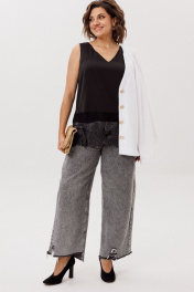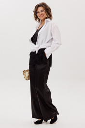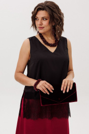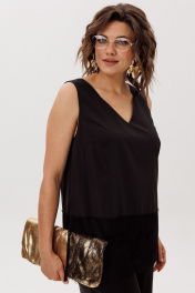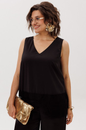 Этот топ от Анелли — искусство быть неотразимой в любой момент. Его прямой силуэт служит идеальным фоном для изысканной игры деталей. Глубокий V-образный вырез мягко обрамляет линию шеи, придавая образу элегантную чувственность, а по бокам тонкие разрезы подчеркивают свободу и грацию движений. Но настоящая поэзия скрыта внизу: великолепное кружево, окаймляющее край, добавляет ноту романтики и загадочности. Он создан для того, чтобы его носить и как изюминку образа, кокетливо выглядывающую из-под строгого жакета или уютного свитера, и как самостоятельный акцент для особого случая. Это та самая вещь, что стирает границы между повседневной легкостью и вечерним шиком, делая каждый ваш день немного прекраснее. На модели в топе цвета «черный лед» атласные брюки 1737, юбка 1510, жакет 1661 и белая рубашка 1203.1. Замеры: Размер 52: ОГ-112; ОБ-116; ДИ-67; Размер 54: ОГ-116; ОБ-120; ДИ-70; Размер 56: ОГ-122; ОБ-126; ДИ-69; Размер 58: ОГ-126; ОБ-130; ДИ-70; Размер 60: ОГ-130; ОБ-134; ДИ-69; Размер 62: ОГ-134; ОБ-138; ДИ-70;