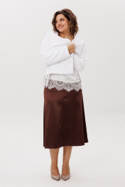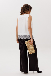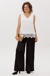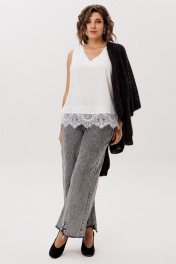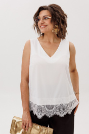 Этот топ от Анелли — искусство быть неотразимой в любой момент. Его прямой силуэт служит идеальным фоном для изысканной игры деталей. Глубокий V-образный вырез мягко обрамляет линию шеи, придавая образу элегантную чувственность, а по бокам тонкие разрезы подчеркивают свободу и грацию движений. Но настоящая поэзия скрыта внизу: великолепное кружево, окаймляющее край, добавляет ноту романтики и загадочности. Он создан для того, чтобы его носить и как изюминку образа, кокетливо выглядывающую из-под строгого жакета или уютного свитера, и как самостоятельный акцент для особого случая. Это та самая вещь, что стирает границы между повседневной легкостью и вечерним шиком, делая каждый ваш день немного прекраснее. На модели в топе цвета «кристаллики льда» атласные брюки 1737, юбка 1510, блузон в пайетки 1522 и жакет 1661. Размер 48: ОГ-104; ОБ-108; ДИ-67; Размер 50: ОГ-108; ОБ-112; ДИ-66 Размер 52: ОГ-112; ОБ-116; ДИ-62; Размер 54: ОГ-116; ОБ-120; ДИ-63; Размер 56: ОГ-122; ОБ-126; ДИ-63; Размер 58: ОГ-126; ОБ-130; ДИ-64; Размер 60: ОГ-130; ОБ-134; ДИ-64; Размер 62: ОГ-134; ОБ-138; ДИ-65;