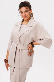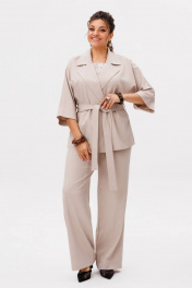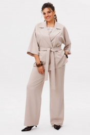 Этот костюм от Анелли - воплощение непринужденной элегантности и продуманного комфорта для каждого дня. Свободный жакет с мягким отложным воротником и лацканами, двубортная застежка которого застегивается на две лаконичные пуговицы, создает расслабленный, но при этом собранный силуэт. Его цельнокроеные рукава длины три четверти изящно открывают запястья, а боковые разрезы придают образу воздушность и свободу движений, дополняясь тонким поясом, который позволяет менять акценты по настроению. Прямые брюки с высокой посадкой идеально балансируют объем верха: они сидят безупречно благодаря комфортной резинке на поясе сзади и классической застежке спереди, а практичные карманы подчеркивают их повседневный характер. Завершает ансамбль лаконичный топ с круглым вырезом и деликатными разрезами по бокам - та самая база, которая делает трио совершенным. Вместе эти три предмета складываются в гармоничный и законченный ансамбль нежного, светлого оттенка «цветение яблонь», а по отдельности каждый из них становится стильным партнером для других вещей в гардеробе, даря своей обладательнице бесконечные возможности для творчества и самовыражения каждый день Замеры: Размер 52: Жакет: ОГ-116; ОТ-116; ОБ-122; ОП-52; ДИ-71; ДР от горловины - 57; Брюки: ОТ-88; ОБ-116; ДИ-110; ширина по низу - 58; Топ: ОГ-112; ОТ-114; ОБ-122; ДИ-60; Размер 54: Жакет: ОГ-122; ОТ-122; ОБ-128; ОП-52; ДИ-71; ДР от горловины - 57; Брюки: ОТ-92; ОБ-120; ДИ-109; ширина по низу - 60; Топ: ОГ-116; ОТ-118; ОБ-126; ДИ-60; Размер 56: Жакет: ОГ-126; ОТ-126; ОБ-132; ОП-54; ДИ-72; ДР от горловины - 57; Брюки: ОТ-98; ОБ-124; ДИ-109; ширина по низу - 61; Топ: ОГ-120; ОТ-122; ОБ-130; ДИ-61; Размер 58: Жакет: ОГ-130; ОТ-130; ОБ-136; ОП-56; ДИ-71; ДР от горловины - 57; Брюки: ОТ-104; ОБ-128; ДИ-109; ширина по низу - 61; Топ: ОГ-126; ОТ-128; ОБ-136; ДИ-62; Размер 60: Жакет: ОГ-134; ОТ-134; ОБ-140; ОП-58; ДИ-72; ДР от горловины - 57; Брюки: ОТ-110; ОБ-132; ДИ-111; ширина по низу - 61; Топ: ОГ-130; ОТ-132; ОБ-140; ДИ-63; Размер 62: Жакет: ОГ-138; ОТ-138; ОБ-144; ОП-60; ДИ-72; ДР от горловины - 57; Брюки: ОТ-116; ОБ-136; ДИ-110; ширина по низу - 61; Топ: ОГ-134; ОТ-136; ОБ-144; ДИ-64;