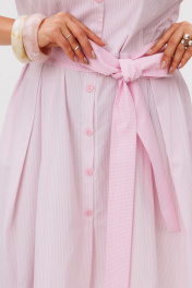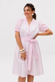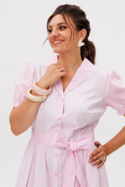 Лёгкое, воздушное платье в цвете «Белоснежка» словно создано для тёплых летних дней, наполненных светом и мягкой женственностью. Отрезное по линии талии, оно мягко подчёркивает силуэт, а функциональная центральная застёжка на пуговицы по всей длине добавляет образу лёгкость и непринуждённость. Нижняя часть платья с двумя встречными складками по переду и спинке от линии талии создаёт красивое движение ткани при каждом шаге, добавляя образу воздушности и деликатного объёма. Хлопковая ткань в мелкую полоску выглядит свежо и утончённо, а детали из ткани-компаньона в такую же мелкую клеточку - втачной короткий рукав-фонарик, отложной воротник с лацканами и съёмный завязывающийся пояс - придают образу особое очарование и делают его по-настоящему выразительным. Это платье от Анелли словно наполнено летним настроением - лёгкое, нежное и очень женственное. Его приятно носить каждый день, сочетая с сандалиями, балетками или лёгкими каблуками, создавая образы, в которых комфорт и красота звучат в одном дыхании. Замеры: Размер 44: ОГ-96; ОТ-80; ОБ-102; ОП-40; ДИ-105; ДР-25; Размер 46: ОГ-100; ОТ-84; ОБ-106; ОП-42; ДИ-105; ДР-25; Размер 48: ОГ-104; ОТ-88; ОБ-110; ОП-44; ДИ-105; ДР-26; Размер 50: ОГ-108; ОТ-92; ОБ-114; ОП-44; ДИ-105; ДР-27; Размер 52: ОГ-112; ОТ-96; ОБ-118; ОП-46; ДИ-105; ДР-27; Размер 54: ОГ-116; ОТ-102; ОБ-122; ОП-46; ДИ-106; ДР-27;